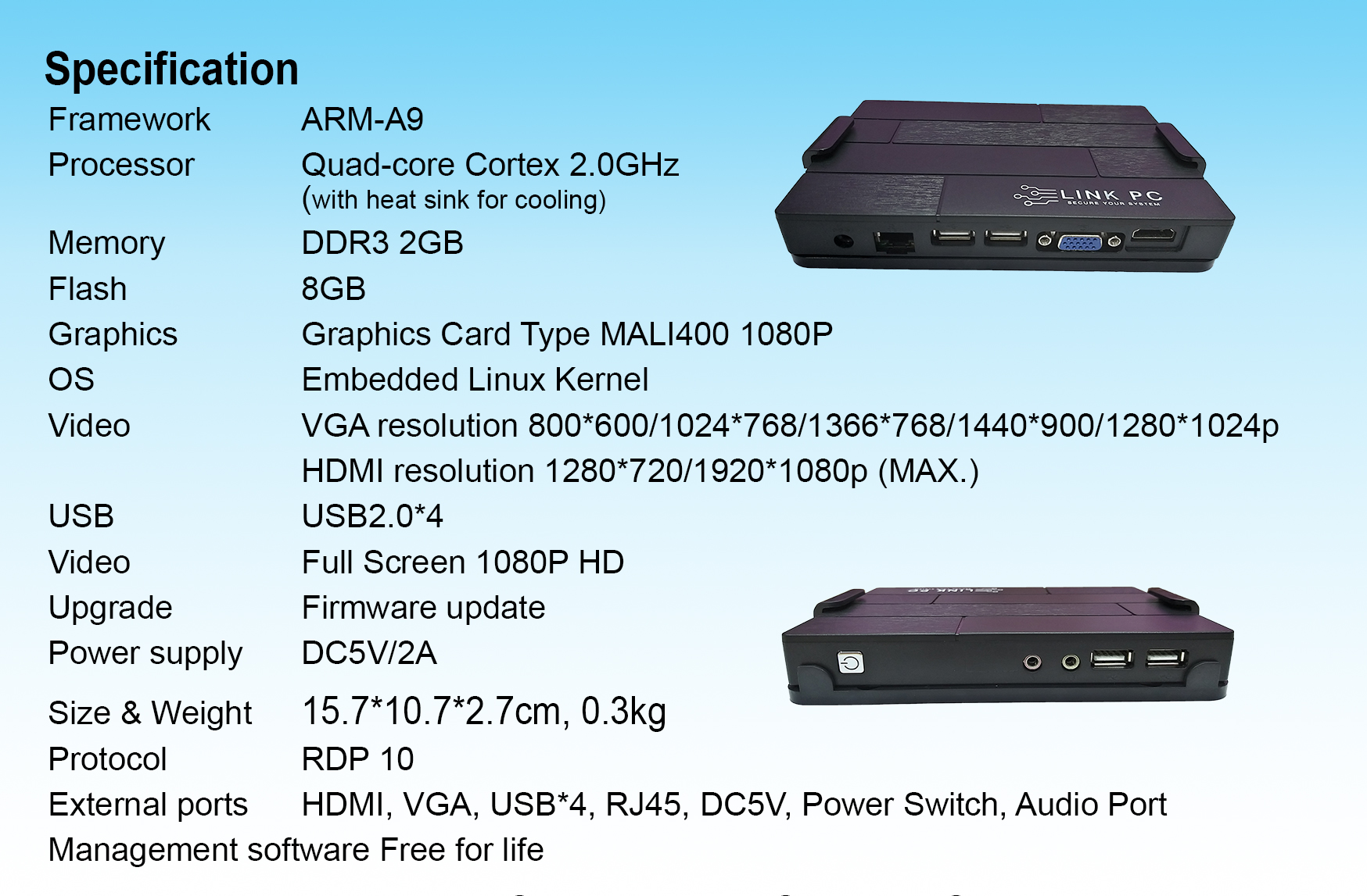 A link PC PLUS thin client device is a streamlined computing solution designed to provide a cost-effective, efficient, and secure computing environment. Thin clients are minimalistic hardware devices that rely on a central server for processing power and storage, allowing for a more centralized and manageable IT infrastructure.